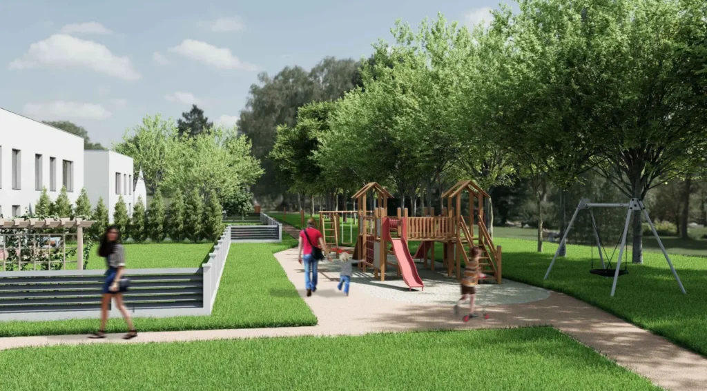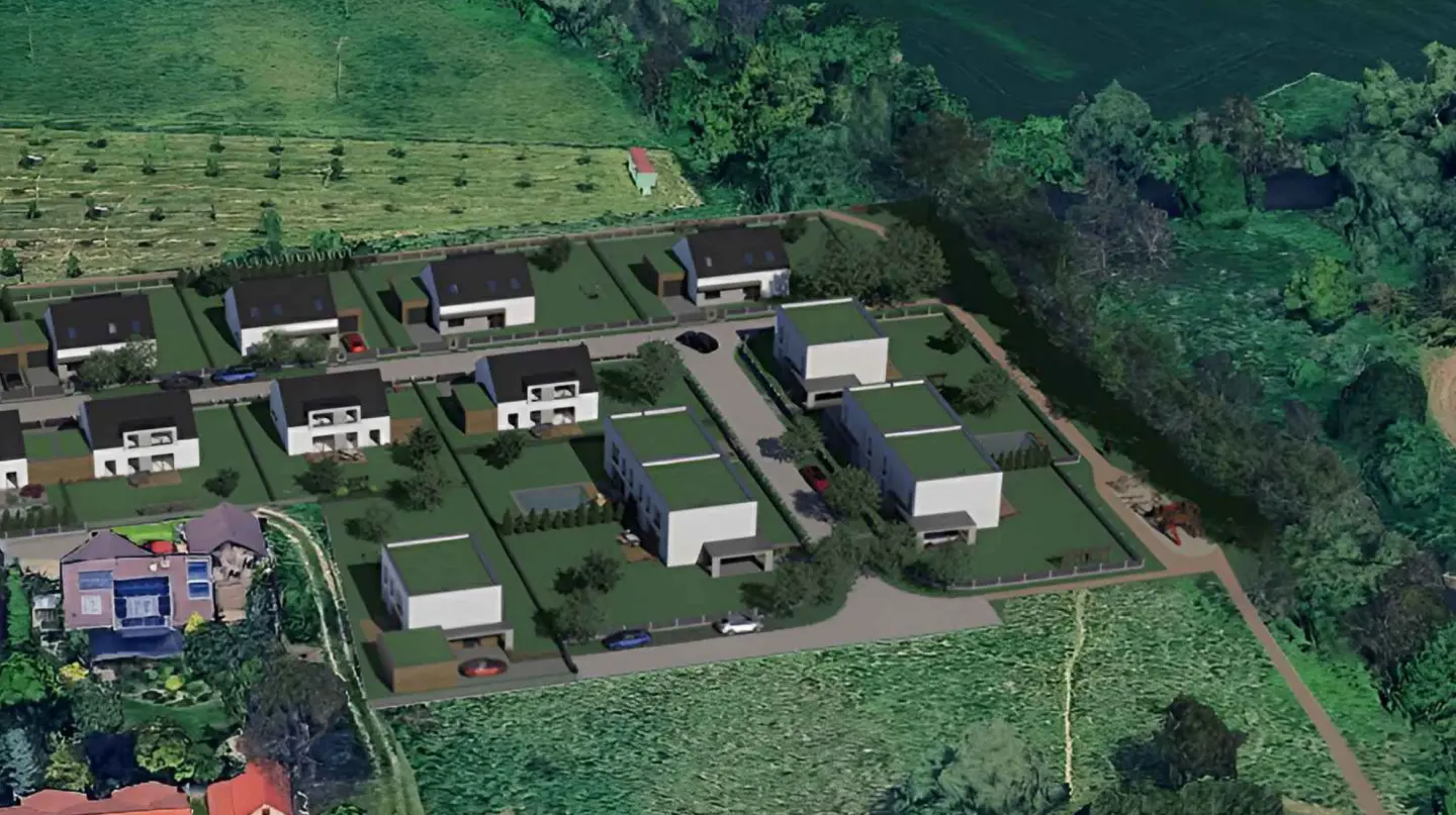 12 prostorných rodinných domů s vlastní zahradou a garáží. Klidná lokalita pouhých 12 km od Brna.